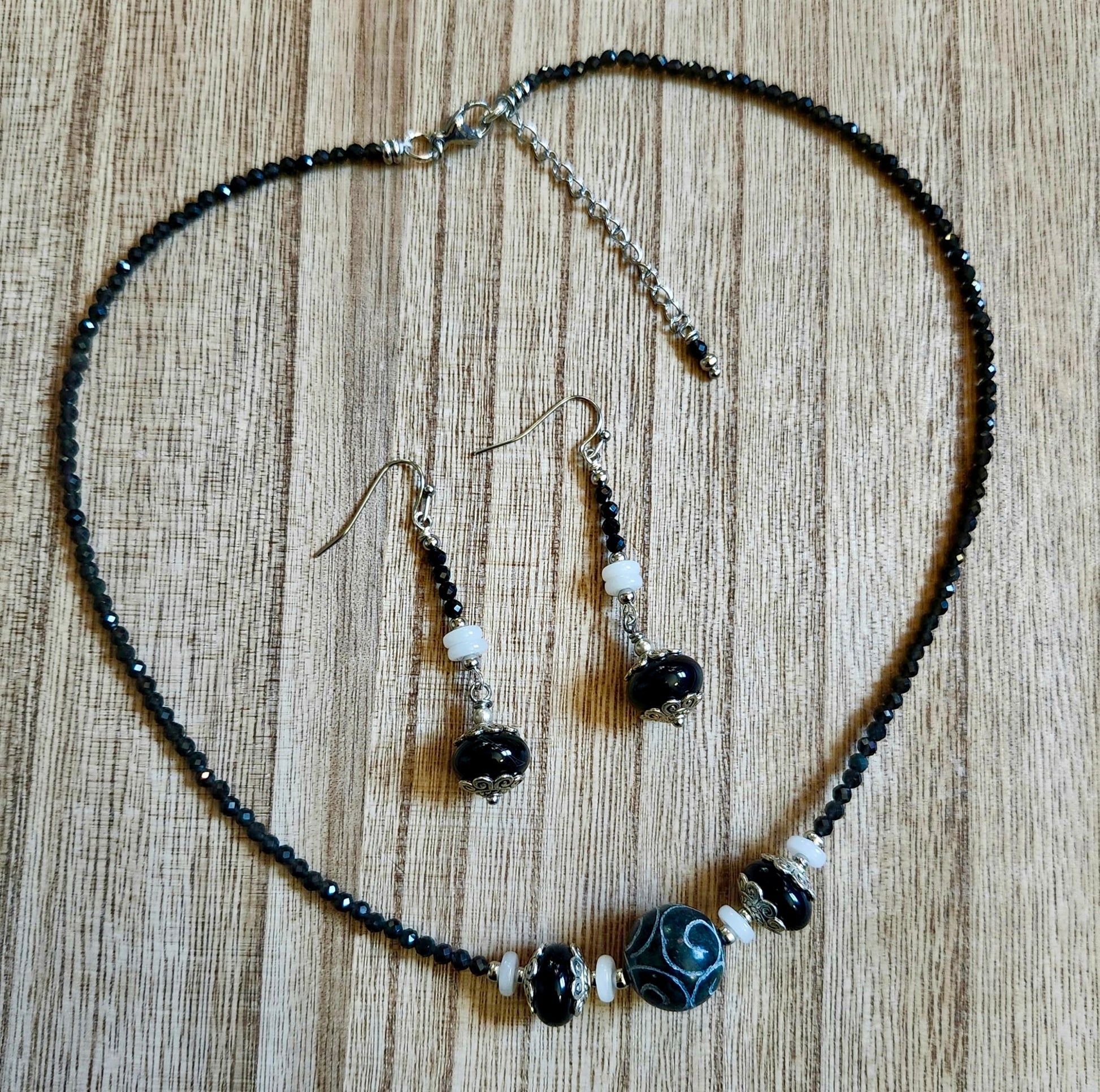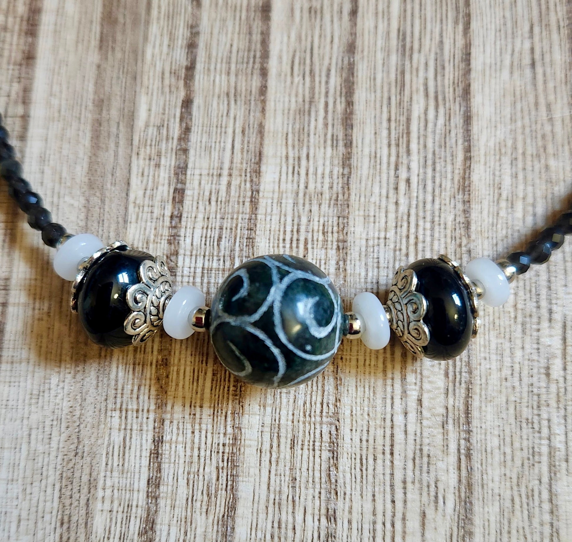 Black and White Agate with Black Onyx Necklace