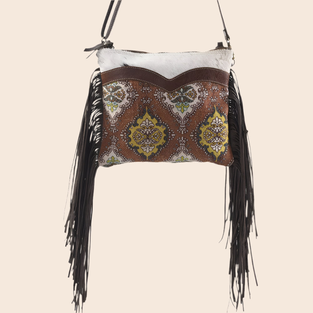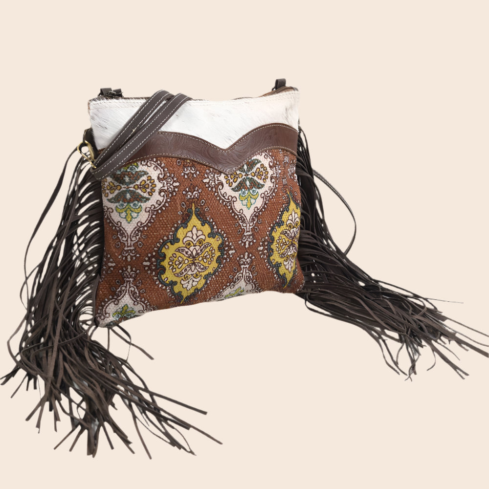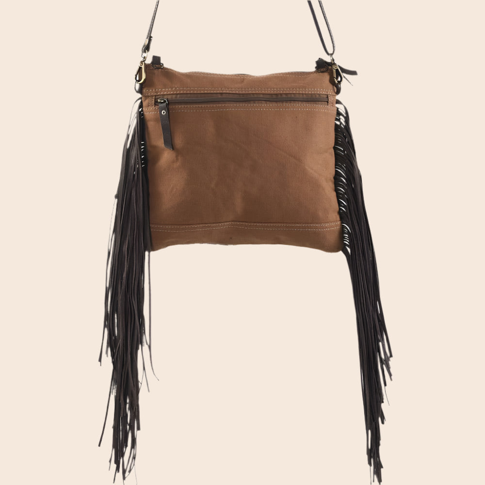 Discover the perfect blend of style and functionality with this Brown Crossbody Bag. With a dimension of 10" x 12", this bag is a wonderful accessory for women who value aesthetics and practicality. The crossbody design ensures hands-free convenience, while the brown hue lends a versatile and timeless appeal. The bag features a fringed fur canvas, offering a unique texture and visual appeal. Moreover, the zipper closure secures your essentials, ensuring peace of mind while on the go. This piece is a testament to our commitment to design innovation and fair trade, reflecting the beauty and nuance of traditional craftsmanship from exotic places like Nepal, Indonesia, and India. Enjoy the blend of American-made quality and global inspiration with this standout accessory.