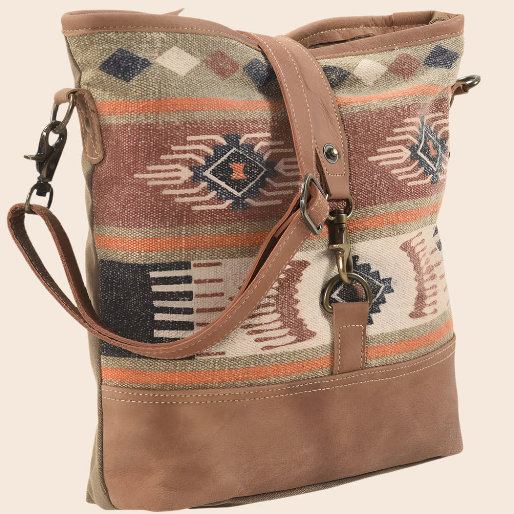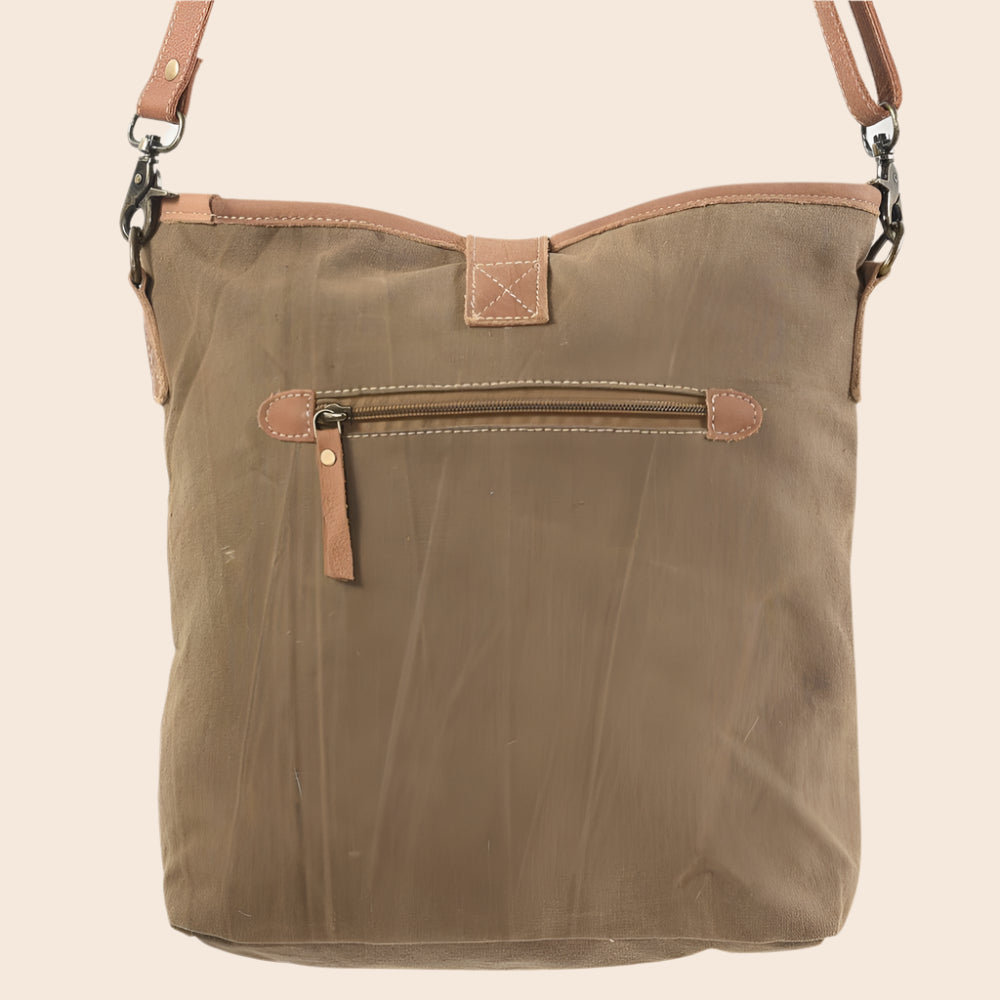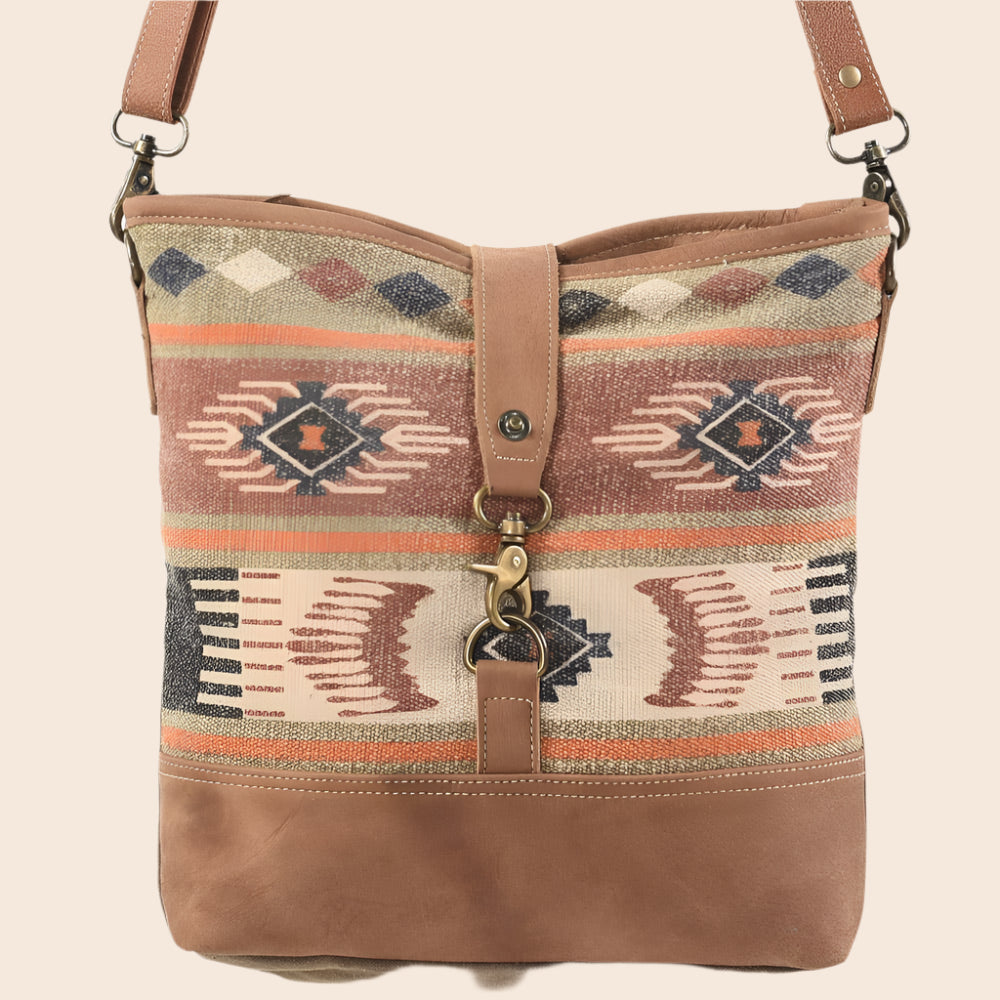The Brown Crossbody With Mixed Fabrics combines style and practicality in a spacious 14" x 13" design, perfect for carrying your essentials. Crafted with care, this bag reflects a blend of American innovation and global artisan craftsmanship, featuring materials sourced from places like Nepal, Indonesia, and India. Its unique mixed fabric construction offers versatility and supports fair trade, making it a meaningful addition to your everyday accessories.