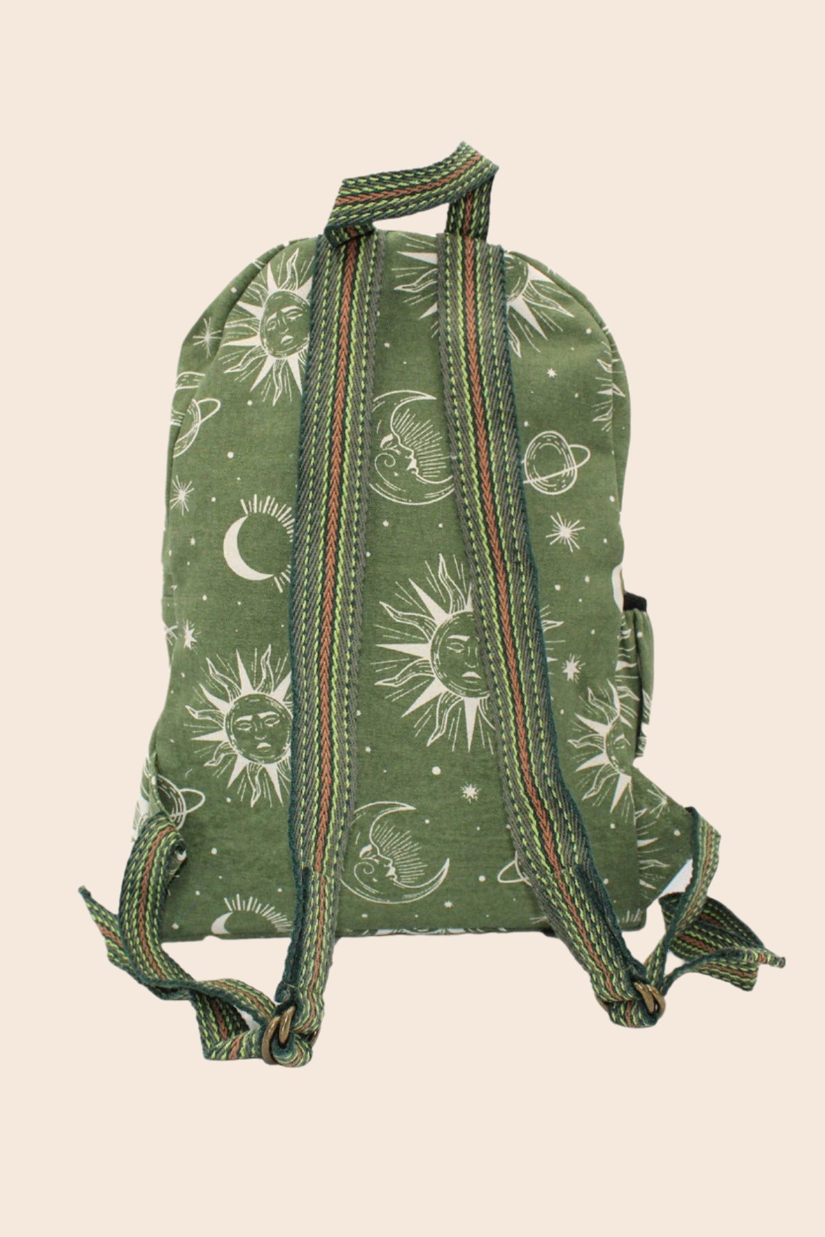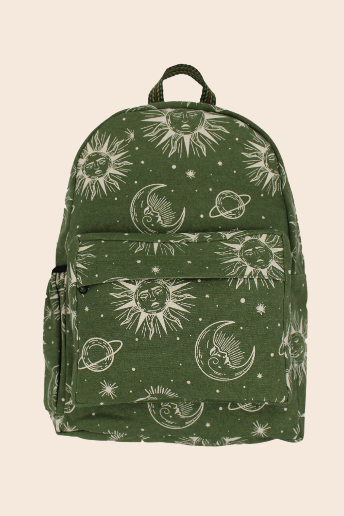 Introducing our stylish backpack adorned with a captivating sun and moon print. Its spacious interior and multiple compartments provide ample storage for all your essentials, while the adjustable straps ensure a comfortable fit. Whether you're heading to work, or embarking on an adventure, this backpack is the perfect companion for those who appreciate both style and practicality.
