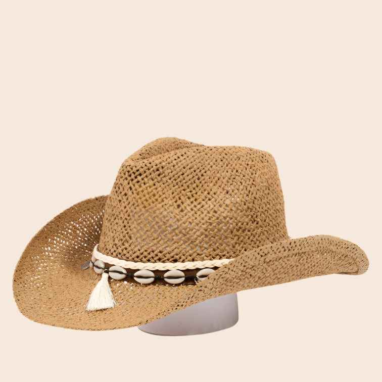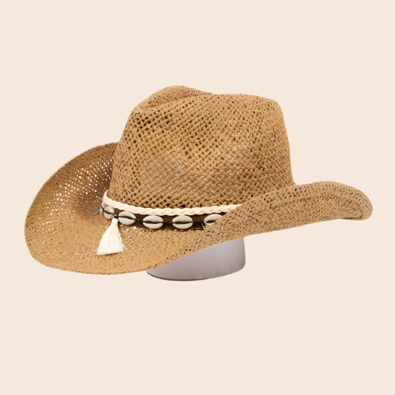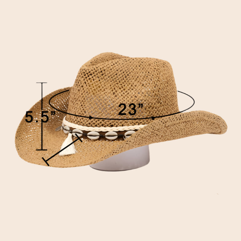 Cowrie Shell Rope Straw Braided Western Cowboy Hat