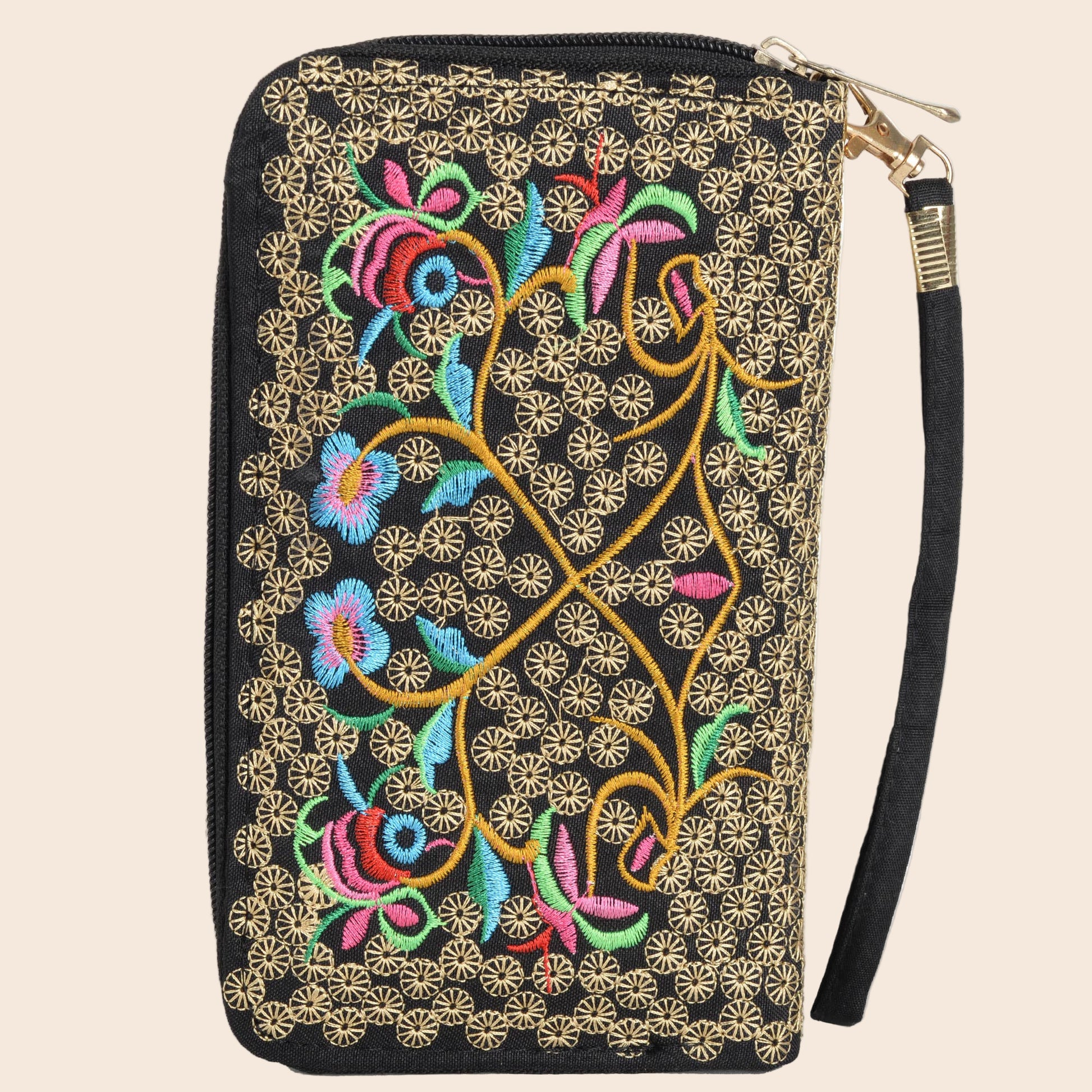 The Embroidered Pink Wristlet measures 4.5" x 7.5" and combines practical design with subtle style. It includes a magnetic closure pocket for easy access to frequently used items and a secure zipper pouch to keep your belongings safe. The attached strap provides convenience for carrying the wristlet hands-free, making it suitable for everyday use, quick outings, or travel. Its embroidered detail adds a refined touch without being overpowering, making this wristlet a versatile accessory for a variety of occasions.