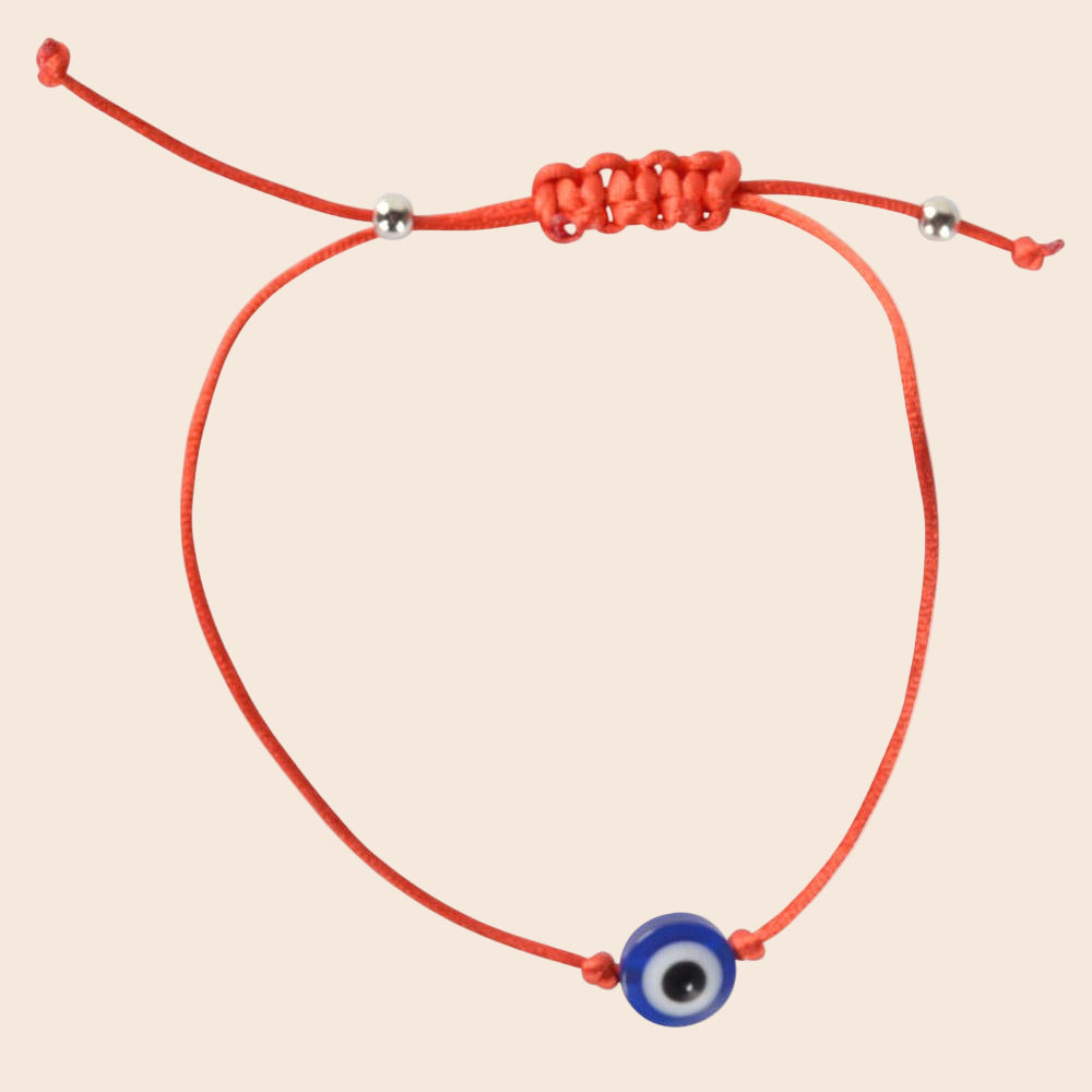 This adjustable red string bracelet features an evil eye charm designed to offer protection and good luck. The pull tie allows for a comfortable, customizable fit, making it suitable for all wrist sizes. Its simple and meaningful design can complement any outfit while serving as a thoughtful gift.