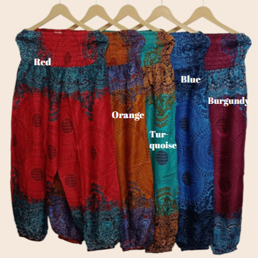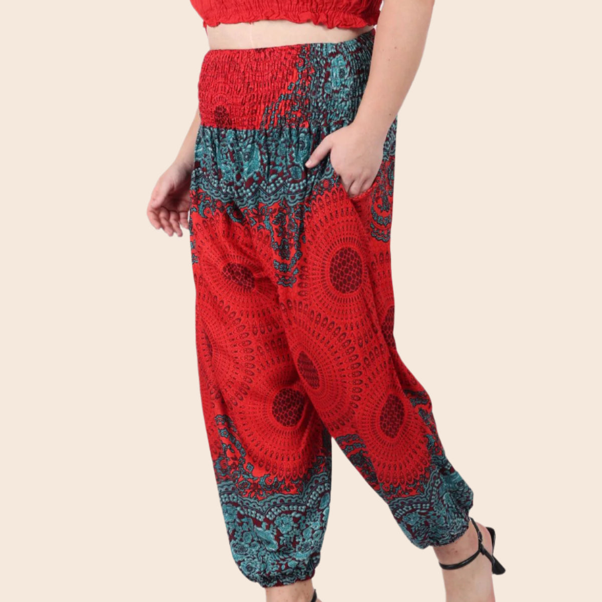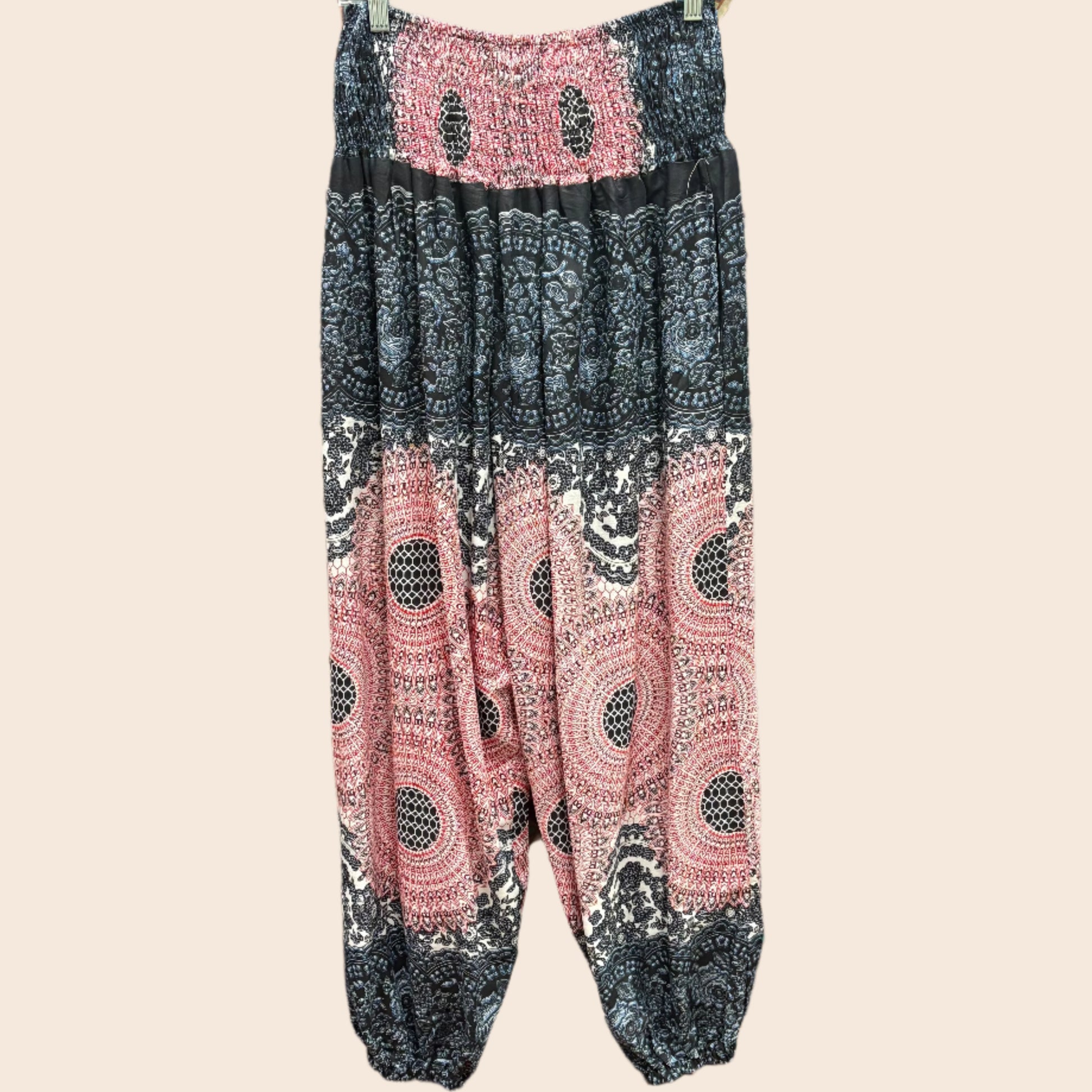 These Mandala Harem Pants feature a smocked waist that comfortably fits waist sizes from 24 to 56 inches. With a length of 40 inches and a convenient single pocket, they offer both style and practicality for everyday wear.