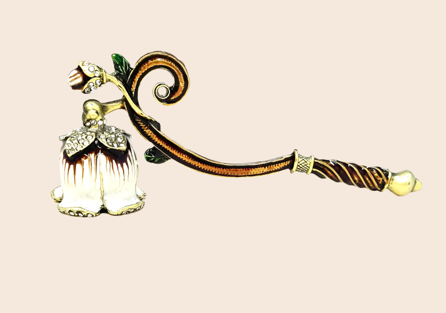 Elegantly designed with intricate details, this ornate candle snuffer offers a stylish and safe way to extinguish candles. Its vintage charm enhances any décor while preventing wax splatters and smoke, making it both a practical and decorative addition to your home.