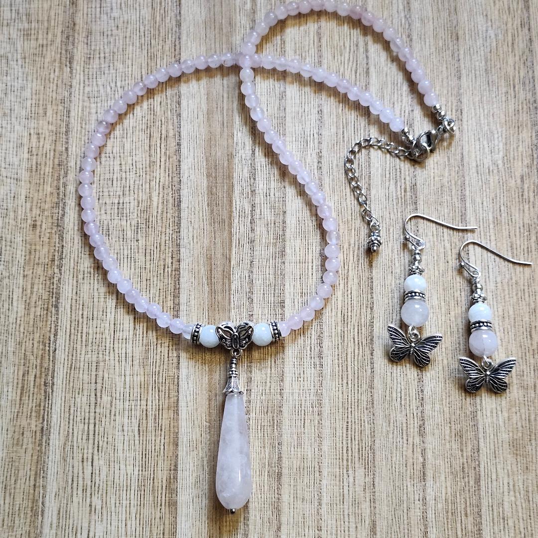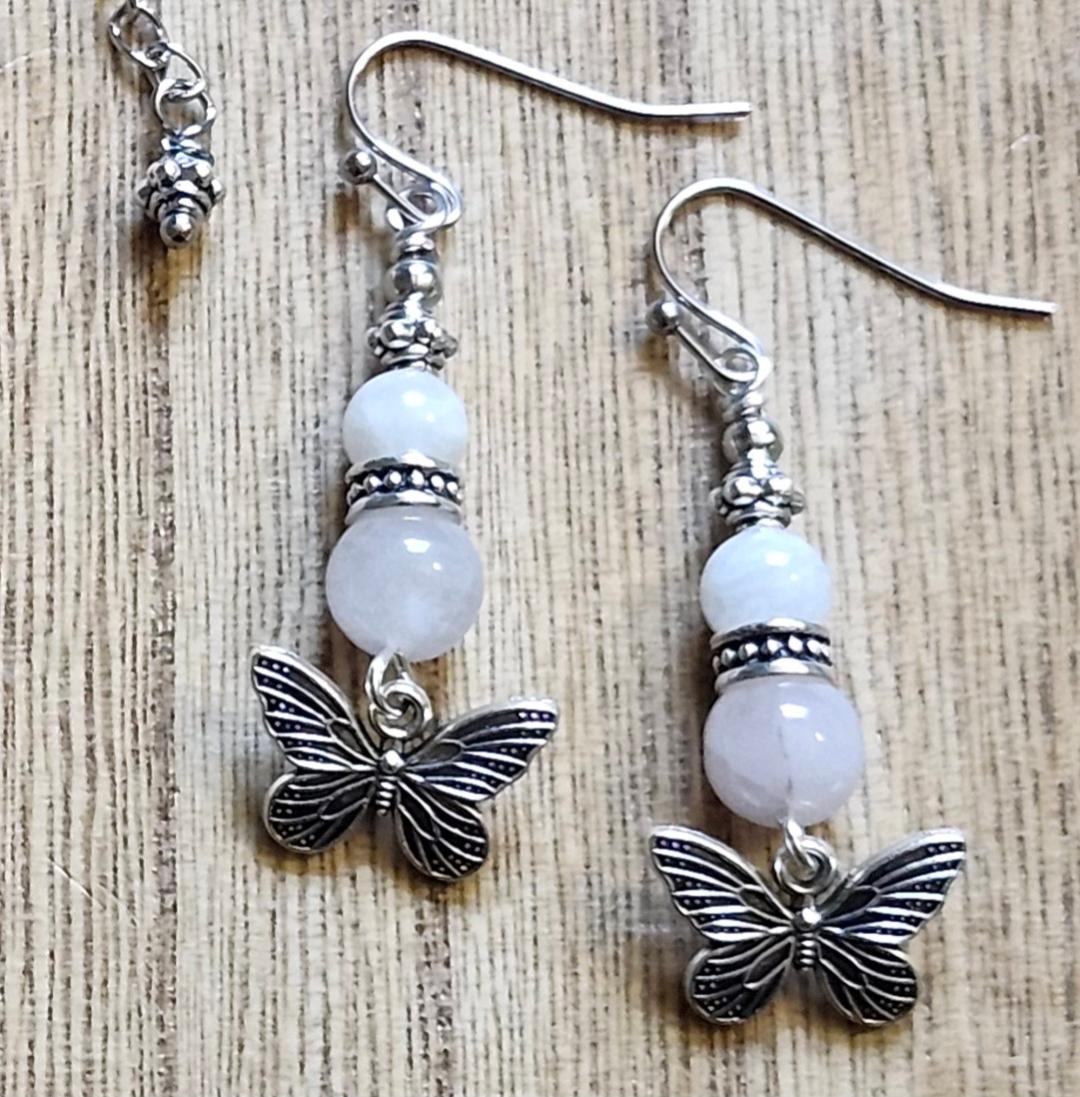 Rose Quartz and Moonstone Butterfly Earrings
