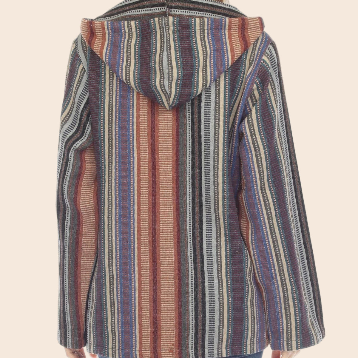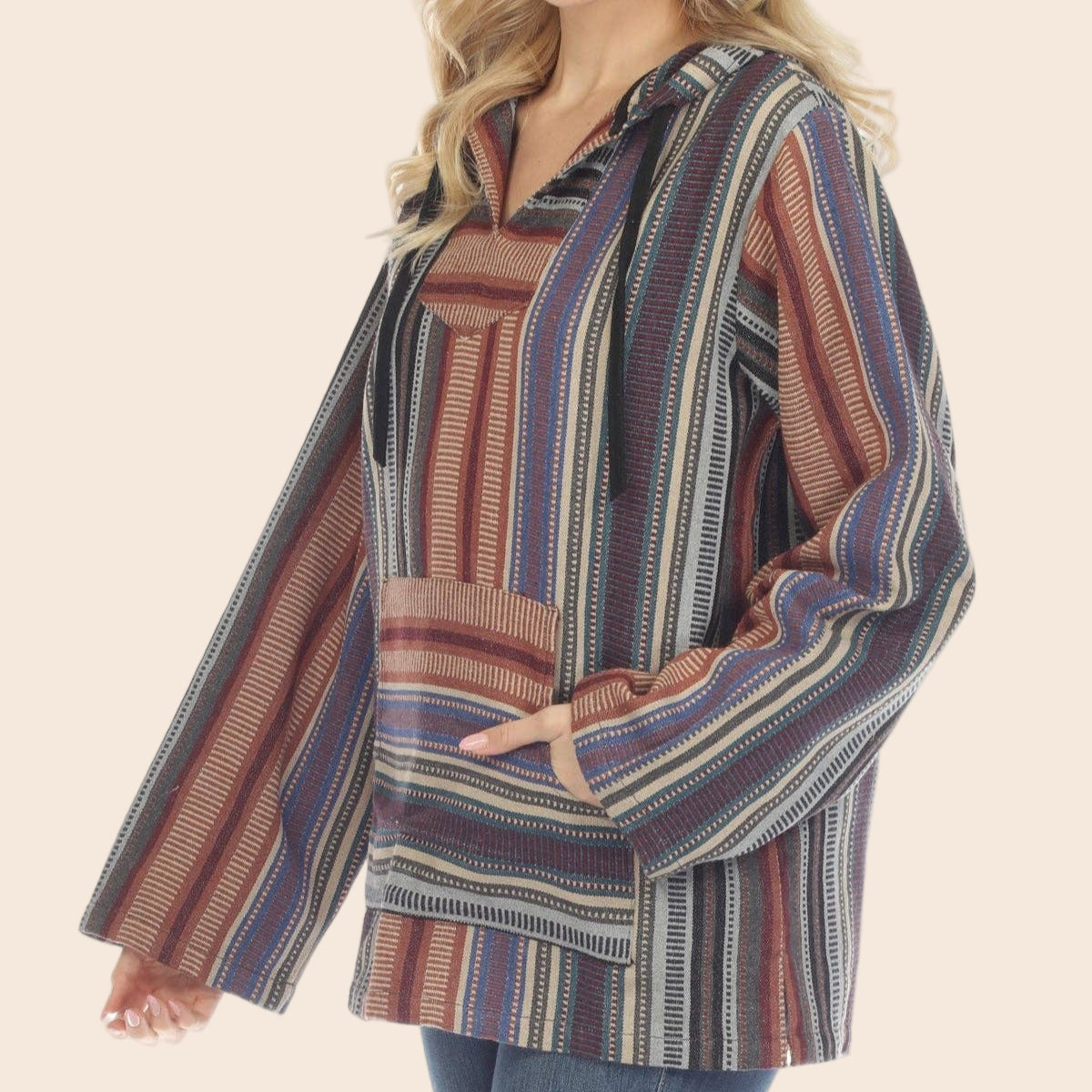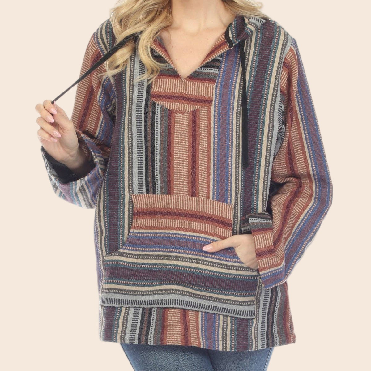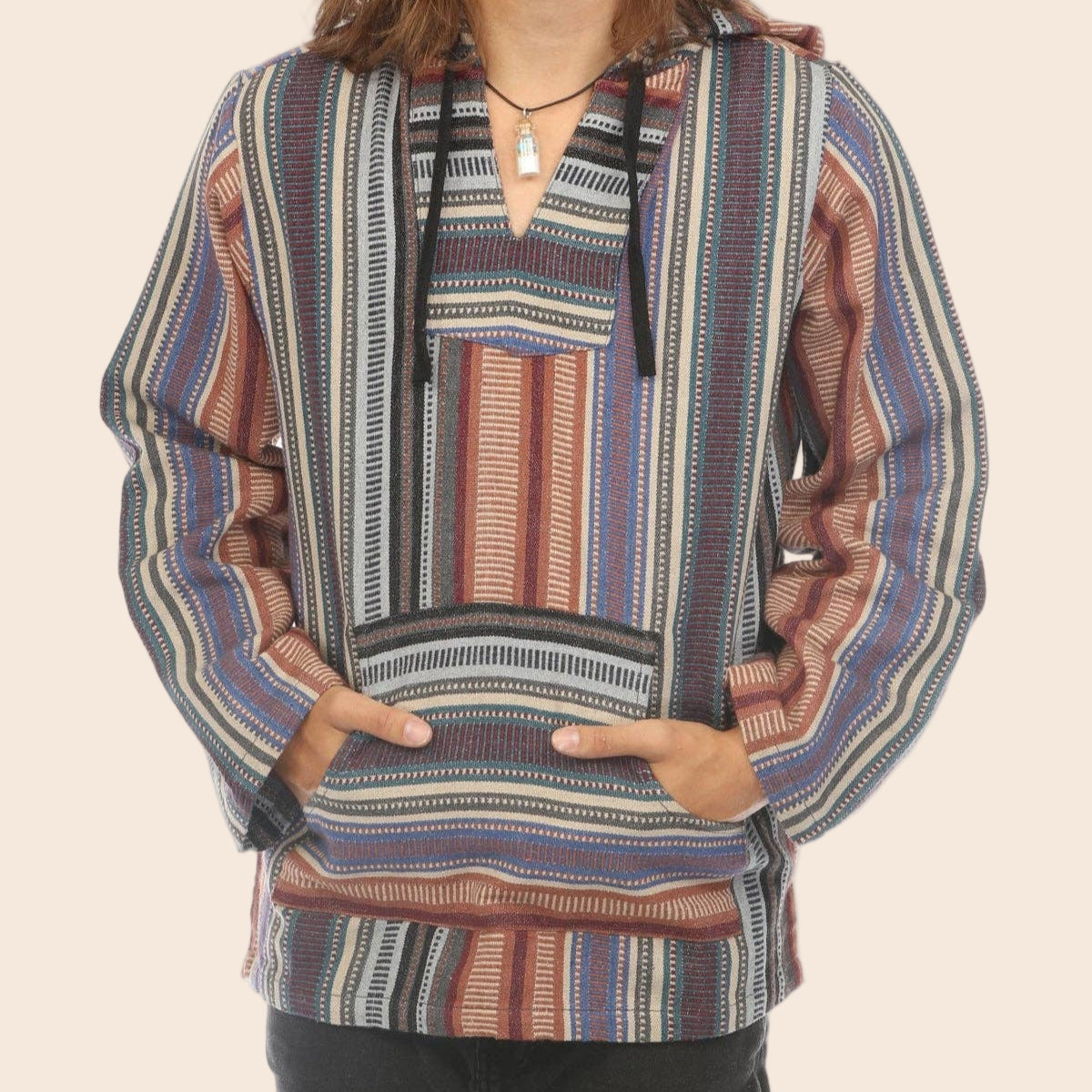 Experience ultimate comfort and vibrant style with the Santa Cruz Unisex Baja Hoodie. This cozy hoodie features a bold, multi-color stripe pattern that embodies a laid-back, bohemian vibe perfect for any casual occasion. Crafted from a soft, durable fabric, it ensures long-lasting wear and a comfortable fit for both men and women. 100% Cotton * SM- Length: 28 Inches l Chest: 46 Inches l Sleeve: 24.5 Inches * M/L- Length: 29 Inches l Chest: 50 Inches l Sleeve: 25.5 Inches * XL- Length: 31 Inches l Chest: 55 Inches l Sleeve: 26 Inches * V-neck with a hoodie Pocket * Made in India