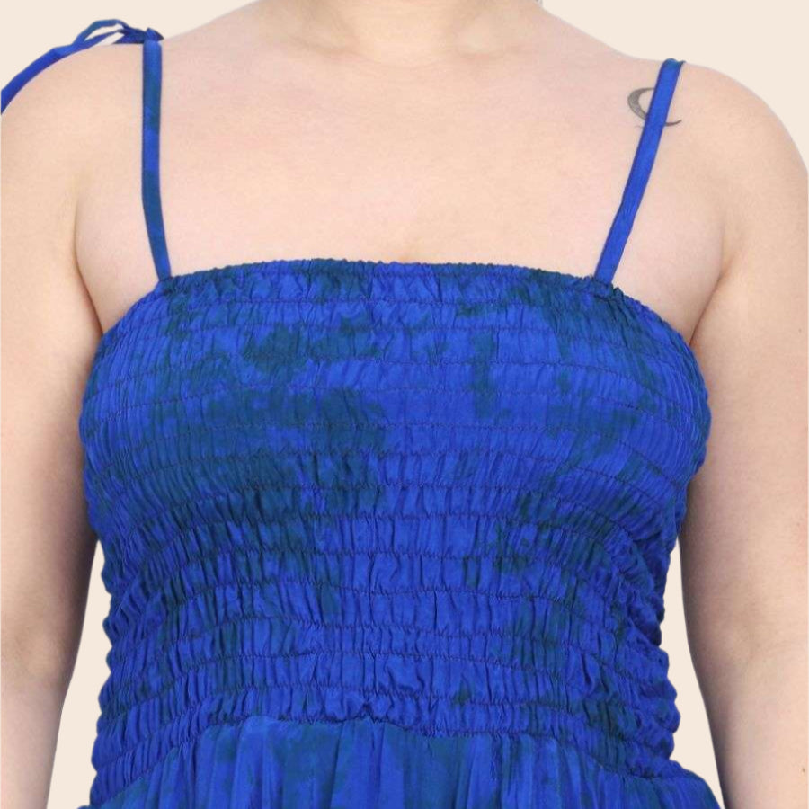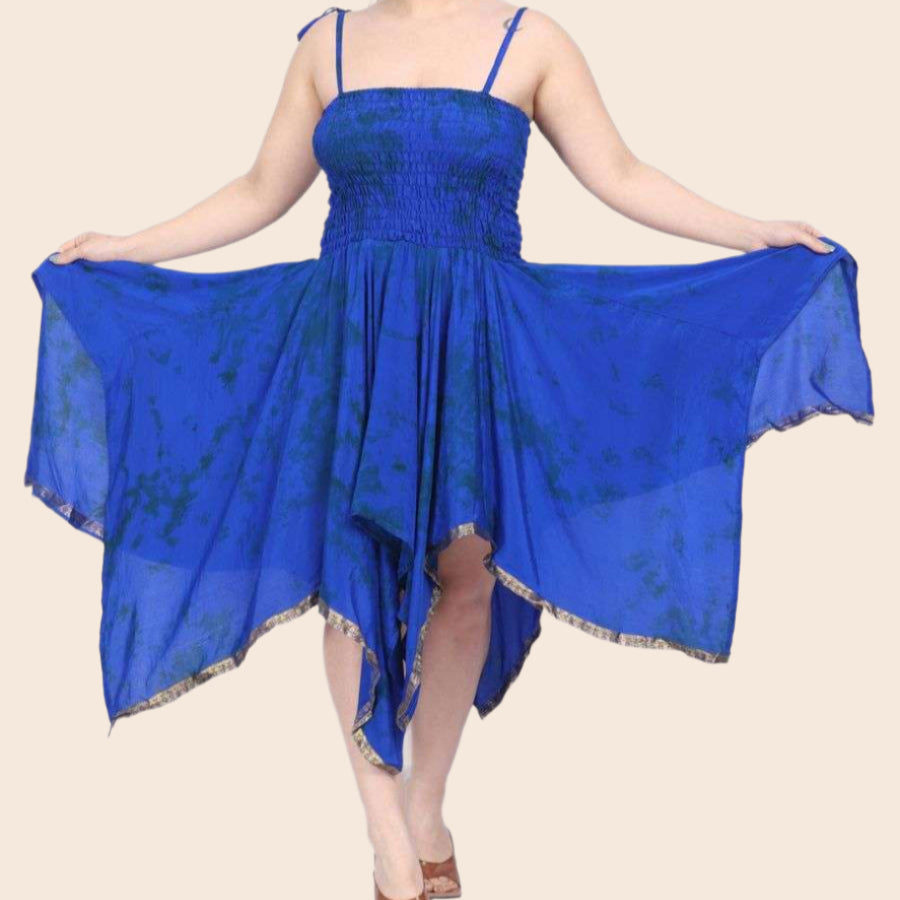This Smocked Bodice Silk Fairy Dress features a stretchy bust that fits comfortably from 26 to 54 inches and flows down to a graceful 44-inch length. The smocked bodice adds a charming texture, while adjustable tied straps let you customize the fit for your perfect fairy tale look. Light, airy, and effortlessly enchanting—get ready to twirl and sparkle wherever you go!