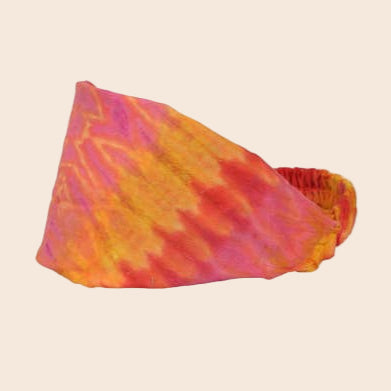 Brighten up your look with our red, yellow and orange tie-dye cotton headband. The soft, adjustable design ties at the back for a comfortable, custom fit. One size fits all, making this versatile accessory perfect for adding a burst of color to any wardrobe. Embrace effortless style with this eye-catching headband.