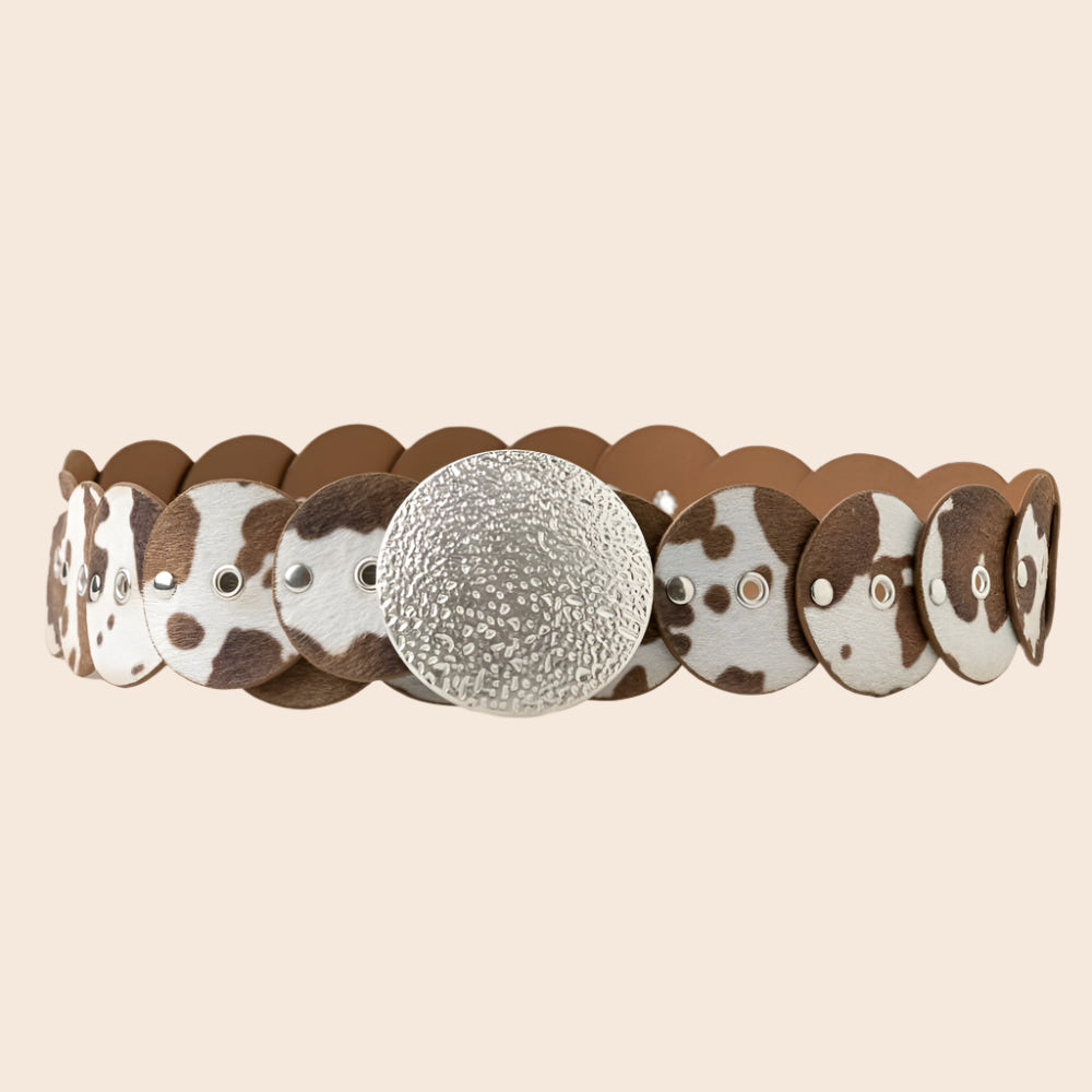 Western Inspired Faux Cowhide Large Round Buckle Belt